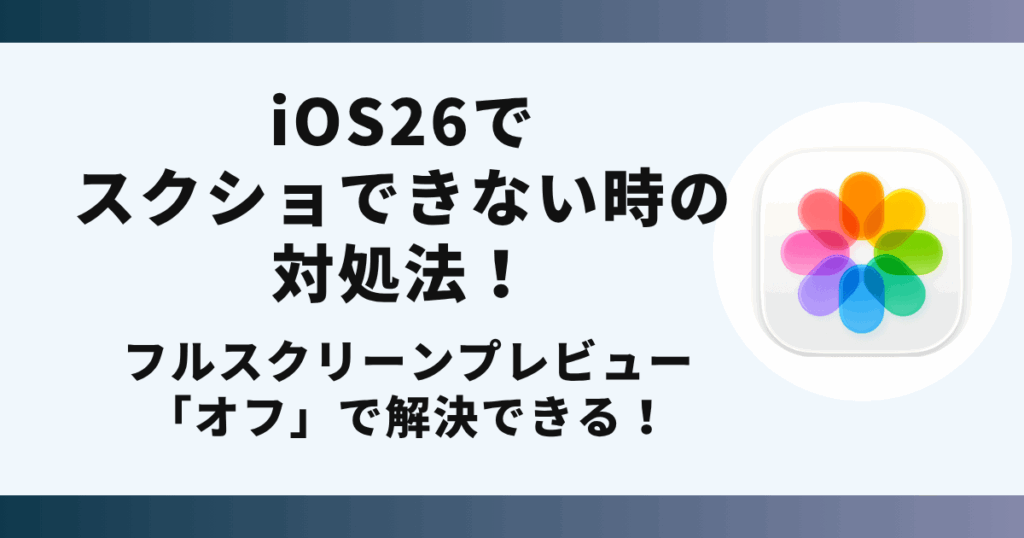 iOS26でスクショできない時の対処法!フルスクリーンプレビューオフで解決できる!