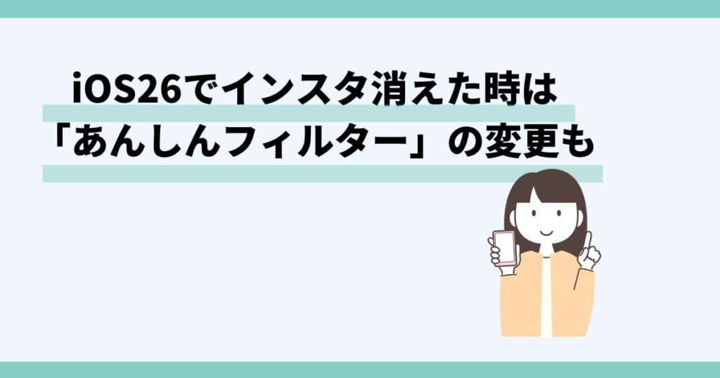 iOS26でインスタ消えた時は「あんしんフィルター」の変更も有効です。